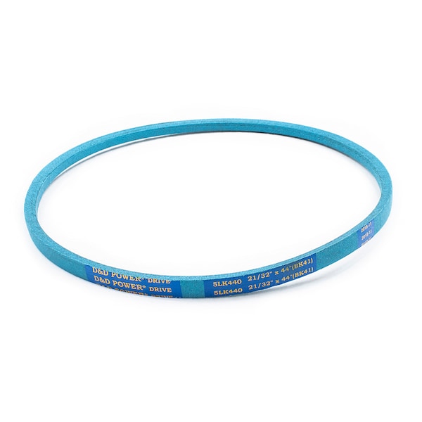 Belt, 5LK, 0.625 x 44in OC, (BK41) D&D DURA-ULTIMATE-DW-BLADE belts meet or exceed USA RMA published ratings levels. They are manufactured to perform at higher levels than all major US Manufacturer’s belts of the same type. DURA-ULTIMATE-DW-BLADE belts are designed for lawn and garden equipment and any abusive drive application. They are manufactured with an outer dry fabric wrap for higher heat and oil resistance and also clutching applications. The tensile cords are manufactured with the highest quality Kevlar. These high quality cords are extremely resistant to severe repeated shock loads. D&D DURA-ULTIMATE DW-BLADE belts have been proven over and over again to exceed any OEM performance and quality.