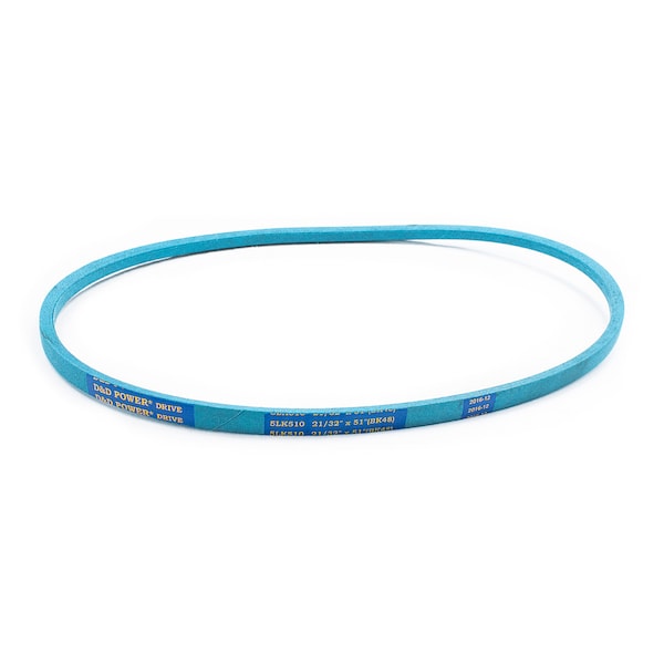Belt, 5LK, 0.625 x 51in OC, (BK48) D&D DURA-ULTIMATE-DW-BLADE belts meet or exceed USA RMA published ratings levels. They are manufactured to perform at higher levels than all major US Manufacturer’s belts of the same type. DURA-ULTIMATE-DW-BLADE belts are designed for lawn and garden equipment and any abusive drive application. They are manufactured with an outer dry fabric wrap for higher heat and oil resistance and also clutching applications. The tensile cords are manufactured with the highest quality Kevlar. These high quality cords are extremely resistant to severe repeated shock loads. D&D DURA-ULTIMATE DW-BLADE belts have been proven over and over again to exceed any OEM performance and quality.
