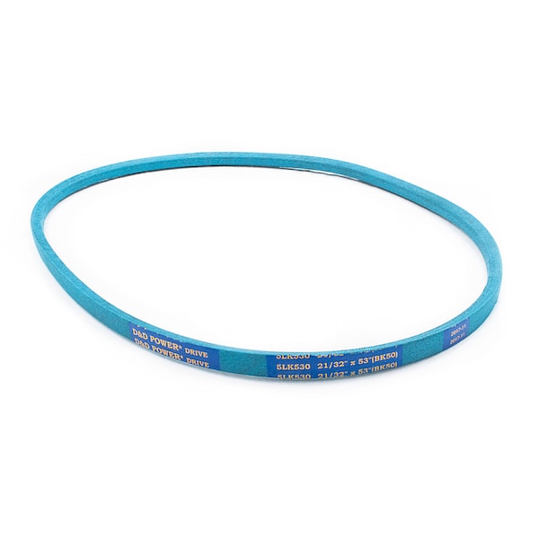 Belt, 5LK, 0.625 x 53in OC, (BK50) D&D DURA-ULTIMATE-DW-BLADE belts meet or exceed USA RMA published ratings levels. They are manufactured to perform at higher levels than all major US Manufacturer’s belts of the same type. DURA-ULTIMATE-DW-BLADE belts are designed for lawn and garden equipment and any abusive drive application. They are manufactured with an outer dry fabric wrap for higher heat and oil resistance and also clutching applications. The tensile cords are manufactured with the highest quality Kevlar. These high quality cords are extremely resistant to severe repeated shock loads. D&D DURA-ULTIMATE DW-BLADE belts have been proven over and over again to exceed any OEM performance and quality.