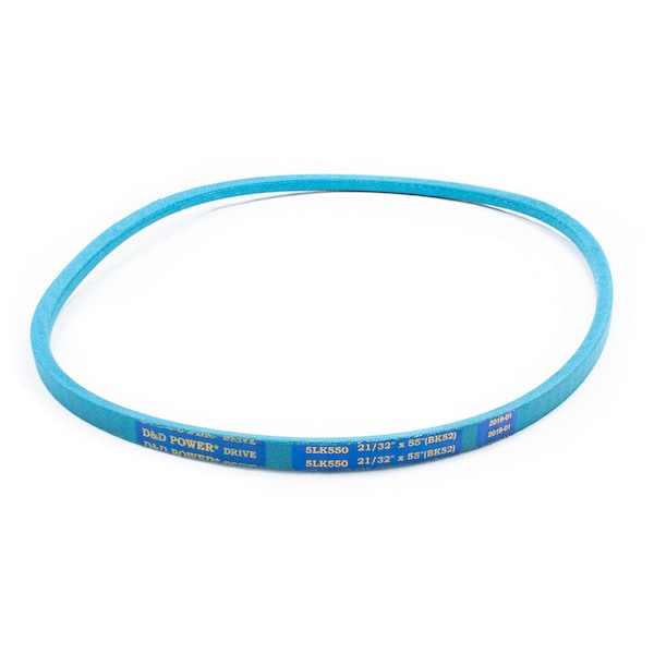 Belt, 5LK, 0.625 x 55in OC, (BK52) D&D DURA-ULTIMATE-DW-BLADE belts meet or exceed USA RMA published ratings levels. They are manufactured to perform at higher levels than all major US Manufacturer’s belts of the same type. DURA-ULTIMATE-DW-BLADE belts are designed for lawn and garden equipment and any abusive drive application. They are manufactured with an outer dry fabric wrap for higher heat and oil resistance and also clutching applications. The tensile cords are manufactured with the highest quality Kevlar. These high quality cords are extremely resistant to severe repeated shock loads. D&D DURA-ULTIMATE DW-BLADE belts have been proven over and over again to exceed any OEM performance and quality.