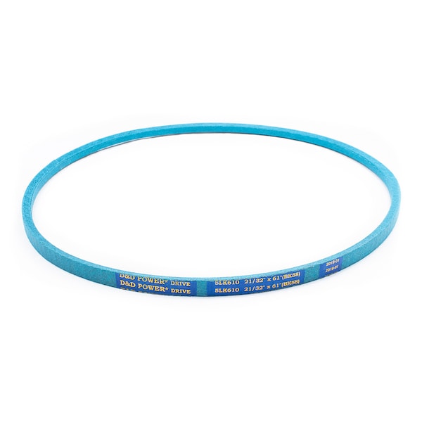 Belt, 5LK, 0.625 x 61in OC, (BK58) D&D DURA-ULTIMATE-DW-BLADE belts meet or exceed USA RMA published ratings levels. They are manufactured to perform at higher levels than all major US Manufacturer’s belts of the same type. DURA-ULTIMATE-DW-BLADE belts are designed for lawn and garden equipment and any abusive drive application. They are manufactured with an outer dry fabric wrap for higher heat and oil resistance and also clutching applications. The tensile cords are manufactured with the highest quality Kevlar. These high quality cords are extremely resistant to severe repeated shock loads. D&D DURA-ULTIMATE DW-BLADE belts have been proven over and over again to exceed any OEM performance and quality.