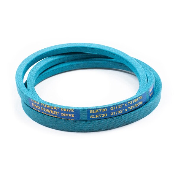 Belt, 5LK, 0.625 x 73in OC, (BK70) D&D DURA-ULTIMATE-DW-BLADE belts meet or exceed USA RMA published ratings levels. They are manufactured to perform at higher levels than all major US Manufacturer’s belts of the same type. DURA-ULTIMATE-DW-BLADE belts are designed for lawn and garden equipment and any abusive drive application. They are manufactured with an outer dry fabric wrap for higher heat and oil resistance and also clutching applications. The tensile cords are manufactured with the highest quality Kevlar. These high quality cords are extremely resistant to severe repeated shock loads. D&D DURA-ULTIMATE DW-BLADE belts have been proven over and over again to exceed any OEM performance and quality.