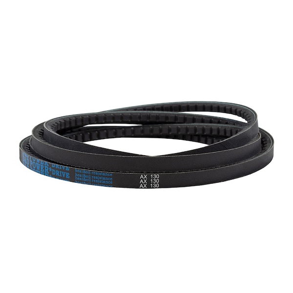 AX130 Cogged, Classical V-Belt, 132 in Outside Length, 1/2 in Top Width, 5/16 in Thickness, 1 Ribs