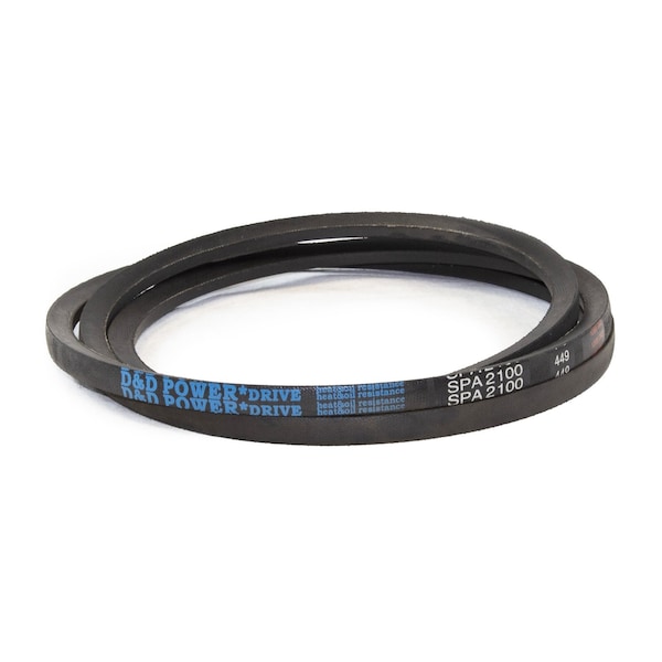 Belt, SPA, 12.7 x 2100mm PL D&D DURA-PRIME METRIC belts meet or exceed USA RMA published ratings levels. They are manufactured to perform at identical or higher levels than all major US Manufacturer’s belts of the same type. The outside fabric wrap is treated with highly oil and heat resistant, engineered synthetic rubber, specifically compounded for superior wear resistance, proven through thousands of hours of customer use to be durable and dependable. The body rubber is a highly engineered synthetic rubber compound, specially compounded for cool running, crack resistance, and excellent bonding to the outside fabric and tensile cords. All DURA-PRIME METRIC Belts are manufactured using the latest in belt technology.