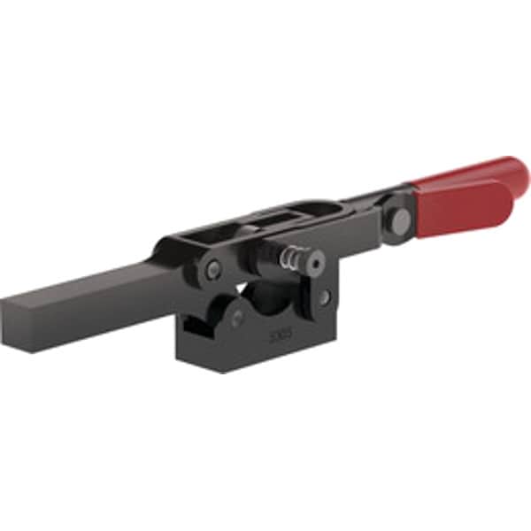 Horizontal Handle Toggle Clamp, Base Mounting Style Solid, Handle Orientation Horizontal, Holding Capacity - Maximum 1,300 lbf, Arm Style Solid Bar, Tip Material Not Applicable, Clamp Arm Opening Angle 90 Degrees , Arm Length 3.63 in, Height Under Arm 1 in, Includes Locking Handle Yes, Accommodates Workpiece Variation No, Application Assembly, Clamping, Welding, Overall Depth 2 in, Overall Length 11.02 in