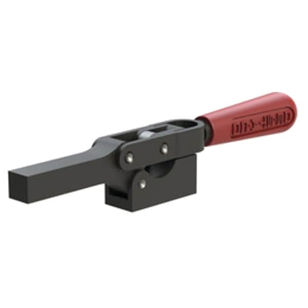 Horizontal Handle Toggle Clamp, Base Mounting Style Solid, Handle Orientation Horizontal, Holding Capacity - Maximum 600 lbf, Arm Style Solid Bar, Tip Material Not Applicable, Clamp Arm Opening Angle 90 Degrees , Arm Length 2.75 in, Height Under Arm 0.81 in, Includes Locking Handle No, Accommodates Workpiece Variation No, Application Assembly, Clamping, Welding, Overall Depth 1.51 in, Overall Length 8.36 in