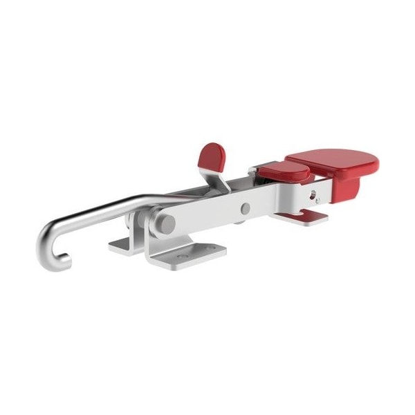 Locking Clamp, Base Mounting Style Flange, Handle Orientation Horizontal, Includes Locking Handle Yes, Holding Capacity - Maximum 375 lbf, Hook Adjustment - Maximum 0.49 in, Drawing Movement Without Thumb Control 4 in, Includes Latch Plate No, Requires Articulation No, Hook Type J, Application Molding, Closures for, Doors, Access Covers, Drums, Containers, Vessels, Arm Length 2.13 in, Body Material Steel, Clamping Force 375 lb, Drawing Movement With Thumb Control 4 in
