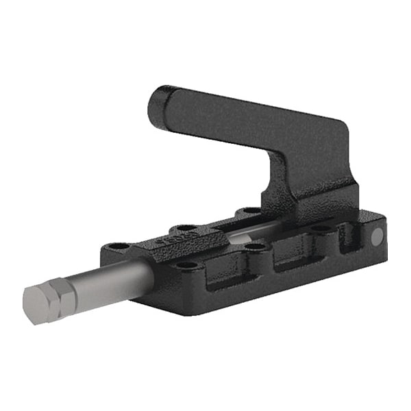 Straight-Line Action Clamp, Base Mounting Style Flange, Handle Orientation Horizontal, Includes Locking Handle No, Holding Capacity - Maximum 550 lbf, Plunger Travel 0.98 in, Plunger Height 0.3 in, Plunger Thread M6, Includes Spindle No, Application Metalworking, Welding, Assembly And Light Machining Fixture, Locking Position Extended, Retracted, Accommodates Workpiece Variation No, Arm Length 0.98 in, Body Material Steel, Clamping Force 550 lb, Fastener Thread Size 3/16 in, Handle Color Black
