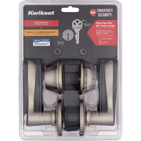 Entry Lever and Deadbolt Set SmartKey Tustin Satin Nickel ANSI/BHMA Grade 2 KW1 1-3/4 Satin Nickel