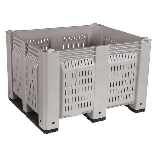 Bulk Container, Color Gray, Container Wall Type Vented, Folded Depth 40 In., Folded Height 31 in, Folded Width 48 in, Fork Entry 4-Way Entry, Fork Pockets Fork Pockets Included, Maximum Operating Temperature 140 Degrees F, Minimum Operating Temperature -40 Degrees F, Mobility Stationary, Overall Height 31 in, Overall Length 48 in, Overall Width 40 in, Stackable Stacking Capable, Stacking Capacity 14,000 lb, Volume Capacity 25.4 cu ft, Weight Capacity 1,500 lb, Collapsible Not Applicable