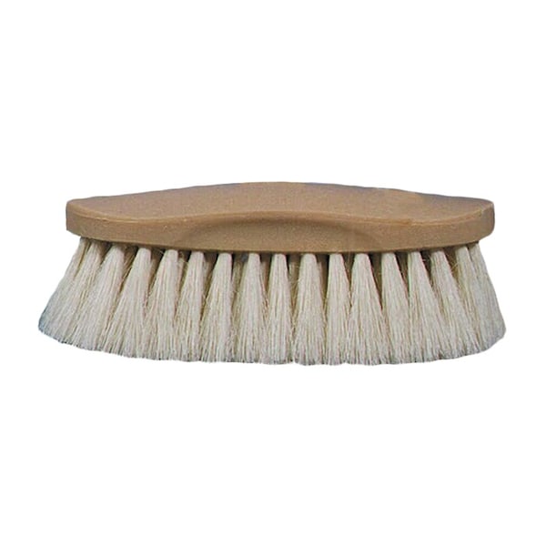 The Decker Showman is an off-white soft natural tampico bristled brush with a full size handle. The bristle is trimmed with our original double contoured trim to provide more surface contact. The handle is made with GRIP-FIT technology. MADE IN USA. Handle Length: 8.5"Bristle Length: 2"REMOVES:- Dust - Light Dirt - Loose Hair - Sheen the body - Groom sensitive areas