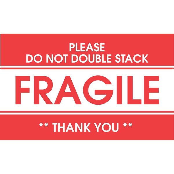 Label, DL1522, FRAGILE PLEASE DO NOT DOUBLE STACK, 2" X 3"