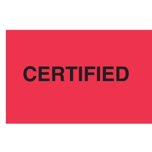 Label, DL3205, CERTIFIED, 3" X 5"