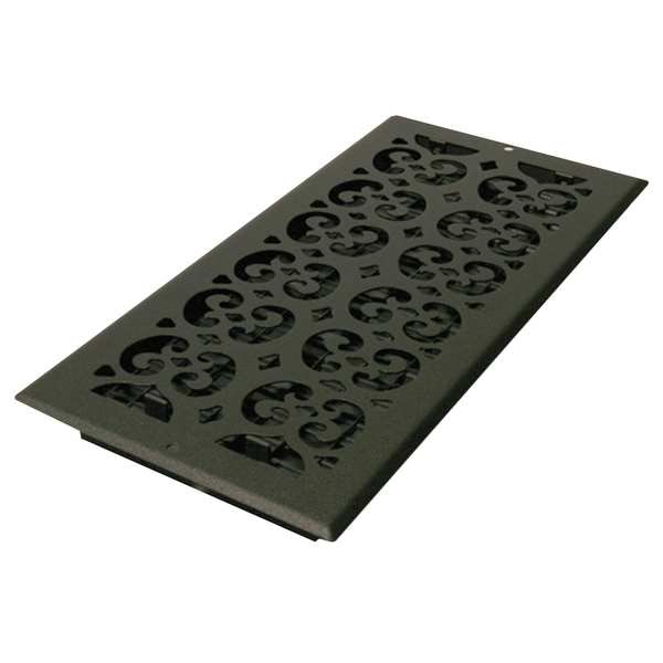 Sidewall/Ceiling Register, Overall Depth 1 3/8 in, Overall Height 15 1/2 in, Overall Width 7 1/2 in, Maximum Opening Height 13 7/8 in, Maximum Opening Width 6 in, Filter Depth 1 3/8 in, Filter Height 15 1/2 in, Filter Width 7 1/2 in, Grille Color Black, Grille Material Steel, Material Steel, Damper Material Plastic, Bar Spacing Not Applicable, Face Design Decorative, Airflow Directions One-Way, Adjustable Blades No, Mounting Location Wall, Mounting Style Surface Mount, Blade Angle 180 Degrees