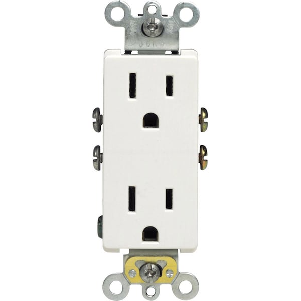 Straight Blade Receptacle, 5-15R, 15 A, 125V AC, 2 Pole, 3 Wire, Flush Mount, Grounded