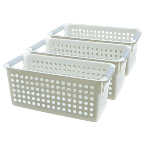 Rectangular Plastic Shelf Organizer Basket with Handles, White - Set of 3 (Discontinued)