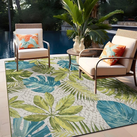 Contemporary Tropical Floral Indoor/Outdoor Area Rug 7'10''x10'6'' Green