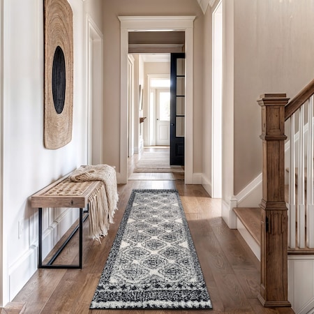 Geometric Stripe Runner Rug 2 ft 3 in x 12 ft Black