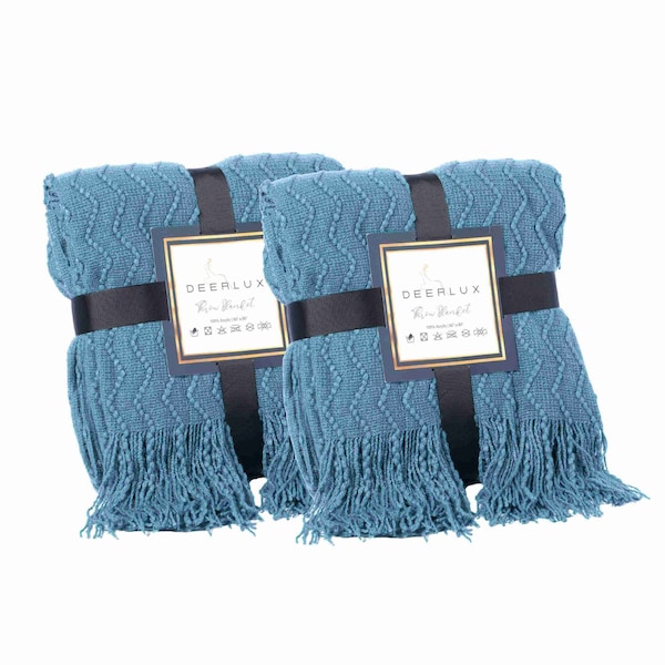 Set of 2 Decorative Chevron Pattern Knit Throw Blanket, 50x60 in, Made with Premium Yarns,