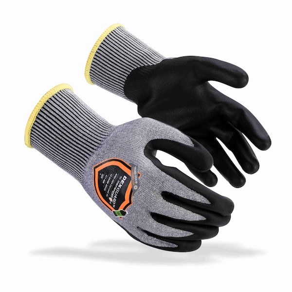 DEXGUARD 13G HPPE Seamless Knit Liner w/Foam Nitrile Coating, Work Glove, ANSI A4 Cut Level, Abrasion Level 4, Knit Wrist, Touch Screen Compatible, Made from Recycled Material, Meets Global Recycling Standards, Reduces C02 Emissions, Gray/Black, Size Medium
