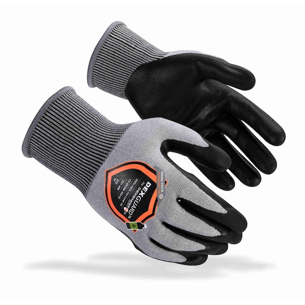 DEXGUARD 18G HPPE Seamless Knit Liner w/Foam Nitrile Coating, Work Glove, ANSI A4 Cut Level, Abrasion Level 4, Knit Wrist, Made from Recycled Material, Meets Global Recycling Standards, Reduces C02 Emissions, Gray/Black, Size Small