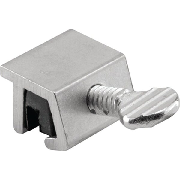 Extruded aluminum lock with nomar vinyl insert to protect track of metal horizontal sliding windows Finish by tightening thumbscrew with pliers to securely lock windows in closed or ventilating positions