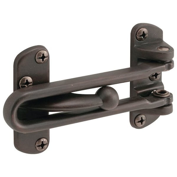 Plated heavy metal casting secures door while allowing 2 in of viewing or ventilation. Includes swing loop keeper, bar lock and installation screws. 3-7/8 in bar length. Prefix U on factory number denotes new Defender Security packaging.