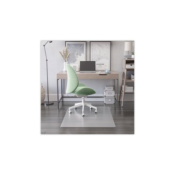 Our new line of EconoMat chair floor mats for hard floors have a non-studded bottom surface that provides a superior, non-skid grip surface ideal for hardwood, tile, laminate, linoleum or even concrete flooring. Its straight edges create a seamless transition from chair mat to hard floor surface. The EconoMat is also treated with Micropel Antimicrobial Protection, a powerful antimicrobial technology that protects the unwanted growth of mold and mildew as well as odor causing bacteria on the mat. Our ergonomic vinyl chair mats are UL Greenguard certified creating an safe, easy glide surface to help you move around your workspace. Mat Type: Chair Mat; Application: Hard Floors; Width: 45in; Length: 53in.