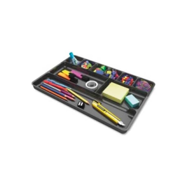 Deflect-o desk drawer organizer 14" x 9" black organize everything from writing utensils to paper clips, tape and notepads with this compartmentalized drawer organizer. 1" high organizer fits most standard desk drawers and offers nine compartments for easy access to small items. Organizer is made of durable plastic with recycled material.