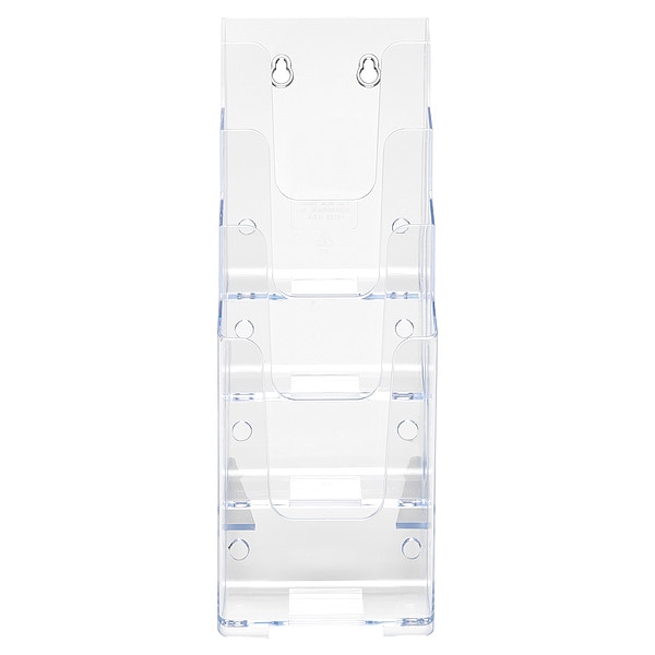 Literature Rack, Product Type Literature Holder, Number of Compartments 4, Includes Label Holders No, Overall Height 10 in, Overall Depth 7 7/8 in, Overall Width 4 3/4 in, Material Polystyrene, Color Crystal Clear, Literature Form Factor A4, Swivel No, Compatible Grainger Part Number Not Applicable, Compartment Type Pocket, Includes Supplemental Riser No, Includes Table No, Mountable Yes, Mounting Location Wall, Riser Color Not Applicable, Riser Material Not Applicable