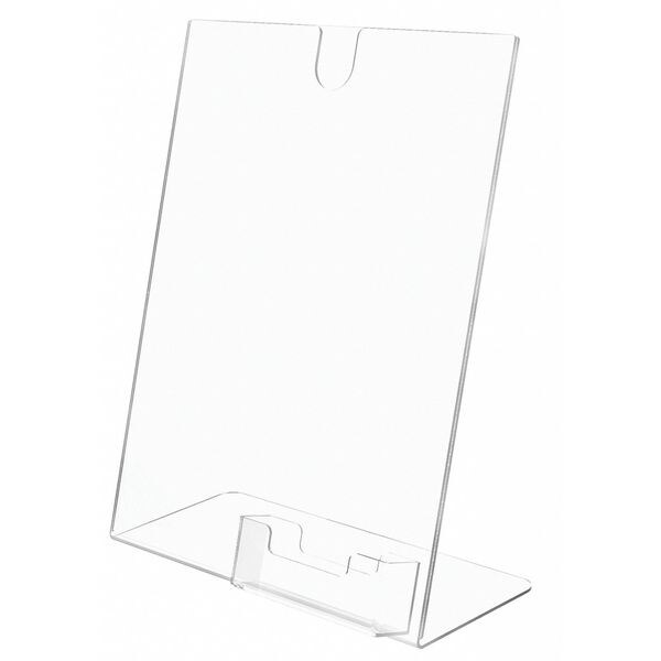 Sign and Literature Holder, Product Type Literature Holder, Number of Compartments 1, Includes Label Holders No, Overall Height 11 in, Overall Depth 4 1/2 in, Overall Width 8 1/2 in, Material Polystyrene, Color Clear, Literature Form Factor Letter, Swivel No, Compatible Grainger Part Number Not Applicable, Compartment Type Pocket