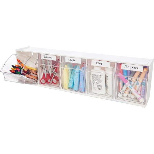 System, Modular, 5-Bin, 23-5/8x5-1/4x6-1/2, White/CL
