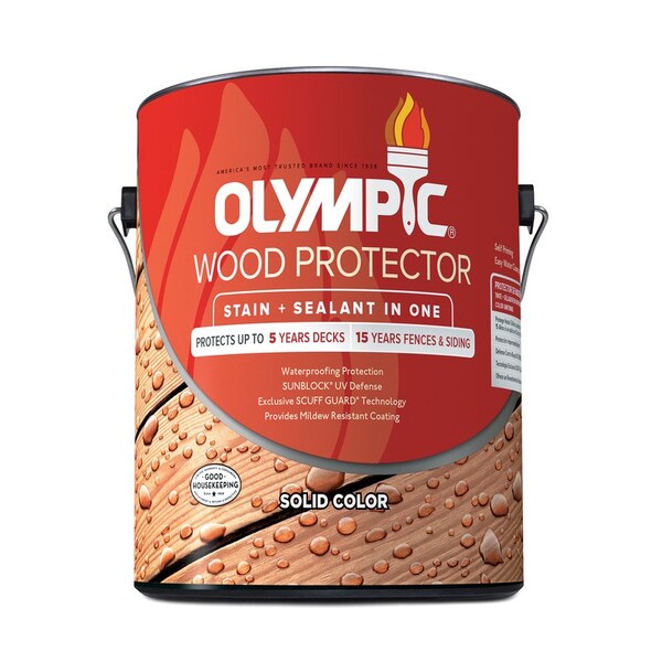 Olympic Solid Tintable Semi-Gloss White Tint Base Acrylic Latex Deck Fence and Siding Stain 1 gal (Discontinued)