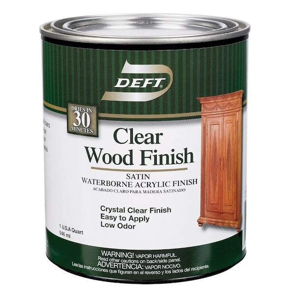 DEFT Interior Clear Waterborne Acrylic Wood Finish is an interior self cross linking acrylic that embodies the quality of the DEFT Interior Clear Brushing Lacquer in a water based formula. Todays professionals and DIYers alike continue to appreciate the ease of use excellent durability and mar resistance. DEFT Interior Clear Waterborne Acrylic Wood Finish is ideal for stained or bare wood surfaces including furniture doors cabinets trim paneling and molding.