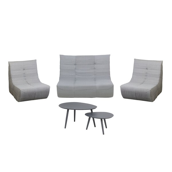 Deko Living 5 Piece Gray Outdoor Compression Foam Loveseat Sofa Chairs and Table Set The Deko Living 5-Piece Gray Outdoor Compression Foam Loveseat Sofa Chairs and Table Set provides a perfect balance of comfort, style, and durability. Featuring high-density polyurethane foam 44 ILD, this set is designed for relaxation and support. The removable vinyl-coated polyester seat covers ensure long-lasting performance, and the aluminum table frame adds a sleek touch. Ideal for larger outdoor spaces.