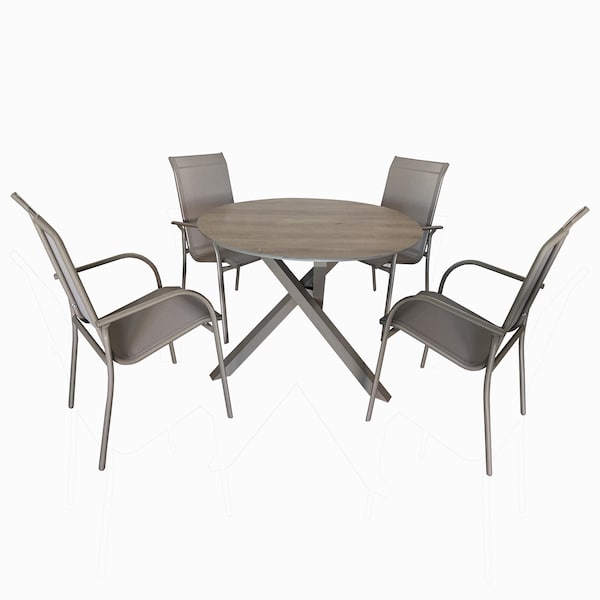 Elevate your outdoor dining experience with the Deko Living 4 Place Seating Champagne Outdoor Aluminum Round Patio Dining Table and Stackable Chairs Set. Designed for modern outdoor living, this sleek and stylish set offers both functionality and comfort. Whether you're enjoying a family dinner or hosting friends for drinks, this set is the perfect addition to your patio, balcony, or garden. Crafted with a powder-coated aluminum frame and Textilene fabric seats, the set is built to endure the elements while providing a chic, minimalist look. The stackable chairs offer easy storage when not in use, making it perfect for smaller spaces or changing seasons. With its durable construction and contemporary design, this set is the ideal combination of elegance and practicality for any outdoor setting.