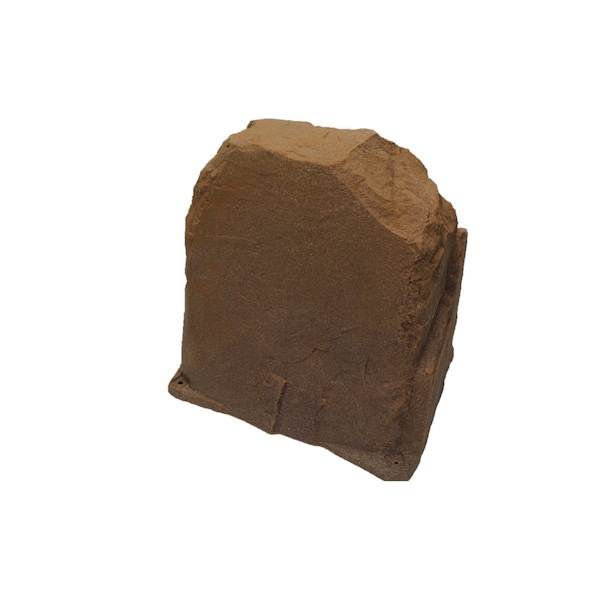 Decorative artificial rock model 115 is perfect for landscaping and concealing well pipes, septic pipes, irrigation valves, bacflow devices, and control panels. This incredibly realistic rock also functions as an address rock and will accept large sized DekoRRa personalized address plaques.