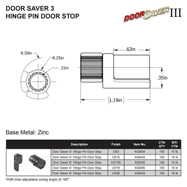 DOOR SAVER 3 HINGE PIN DOOR STOP BLACK