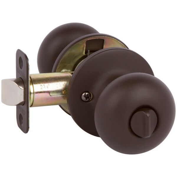 Callan Saxon style oil rubbed bronze privacy knob incorporates Old World Quality with New Age Design. The round knob design with flat face adds style and value to any home and complements a wide range of interior designs. The privacy set lever lock is for use on bedroom and bathroom doors requiring a locking function with a thumb turn on the inside. Lever comes with an emergency release on the outside with a pin provided with the lever.