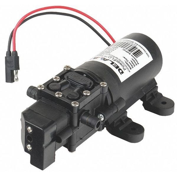 Diaphragm Pump, Operating Pressure (Maximum) 40 psi, Air Intake Connection Type Barbed, Diaphragm Chamber Design 2, Diaphragm Material Santoprene, Check Valve Material Viton, Discharge Connection Size 3/8 in, Discharge Connection Type Barbed, Flow Rate (Maximum) 1 gpm, Housing Material Polypropylene, Intake Connection Size 3/8 in, Intake Connection Type Hose, Nameplate Voltage 12V DC, Priming Self-Priming, Pump Operation Type Electric, Pressure Switch Yes, Standards CE, NSF