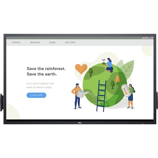 Create interactive corporate meetings with the Dell C5522QT 55'' Class 4K UHD Touchscreen Conference Room IPS LED Display. It supports up to 20 simultaneous touch points for engaging, collaborative meetings. DisplayPort 1.2 and three HDMI inputs let you connect multiple source components, and a 3.5mm audio output lets you run sound directly from the display to your external sound system. The C5522QT outputs up to 350 cd/m of brightness with a 1300:1 contrast ratio to help enhance visibility in bright environments, with up to 178 x 178 Deg viewing angles.