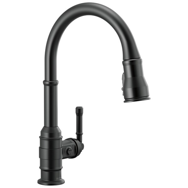 The powerful features of the Broderick Collection take center stage in the kitchen, with an industrial style that alludes to a rich heritage. The collection includes distinctive bridge faucet and pull-down spring spout faucet options that add a unique element to any kitchen. Styled after the rugged nuts and bolts of machinery, it serves as a true centerpiece in the kitchen. Kitchen sink faucets with Touch-Clean Spray Holes allow you to easily wipe away calcium and lime build-up with the touch of a finger. Delta ShieldSpray Technology cleans with laser-like precision while containing mess and splatter. A concentrated jet powers away stubborn messes while an innovative shield of water contains splatter and clears off the mess, so you can spend less time soaking, scrubbing and shirt swapping. Delta kitchen faucets with Diamond Seal Technology perform like new for life with a patented design which reduces leak points, is less hassle to install and lasts twice as long as the industry standard*. Kitchen sink faucets with Touch-Clean Spray Holes allow you to easily wipe away calcium and lime build-up with the touch of a finger. You can install with confidence, knowing that Delta kitchen faucets are backed by our Lifetime Limited Warranty. *Industry standard is based on ASME A112.18.1 of 500,000 cycles.
