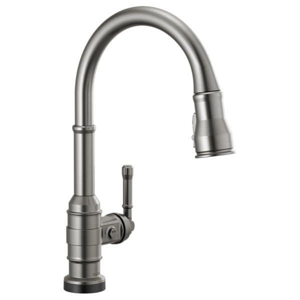 The powerful features of the Broderick Collection take center stage in the kitchen, with an industrial style that alludes to a rich heritage. Delta Touch2O faucets with Touchless Technology help keep germs and mess off your kitchen faucet and provides easy water control 3 ways: simply place your hand near the faucet, tap the faucet surface, or use standard handle activation. ShieldSpray Technology cleans with laser-like precision while containing mess and splatter. A concentrated jet powers away stubborn messes while an innovative shield of water contains splatter and clears off the mess, so you can spend less time soaking, scrubbing and shirt swapping. The TempSense LED light changes color to alert you to the waters temperature and eliminate any possible surprises or discomfort. MagnaTite Docking uses a powerful integrated magnet to pull your faucet spray wand precisely into place and hold it there so it stays docked when not in use. Delta faucets with Diamond Seal Technology perform like new for life with a patented design which reduces leak points, is less hassle to install and lasts twice as long as the industry standard.