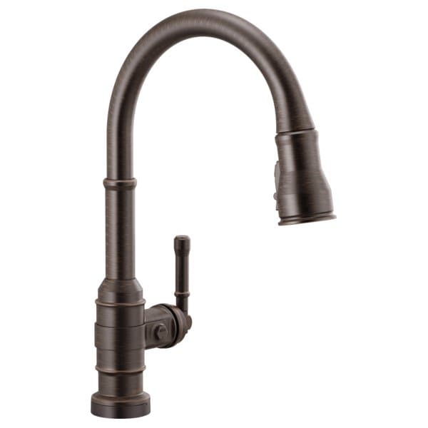 The powerful features of the Broderick Collection take center stage in the kitchen, with an industrial style that alludes to a rich heritage. Delta Touch2O faucets with Touchless Technology help keep germs and mess off your kitchen faucet and provides easy water control 3 ways: simply place your hand near the faucet, tap the faucet surface, or use standard handle activation. ShieldSpray Technology cleans with laser-like precision while containing mess and splatter. A concentrated jet powers away stubborn messes while an innovative shield of water contains splatter and clears off the mess, so you can spend less time soaking, scrubbing and shirt swapping. The TempSense LED light changes color to alert you to the waters temperature and eliminate any possible surprises or discomfort. MagnaTite Docking uses a powerful integrated magnet to pull your faucet spray wand precisely into place and hold it there so it stays docked when not in use. Delta faucets with Diamond Seal Technology perform like new for life with a patented design which reduces leak points, is less hassle to install and lasts twice as long as the industry standard.