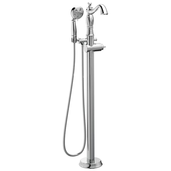 Cassidy Single Handle Floor Mount Tub Filler Trim with Hand Shower - Less Handle