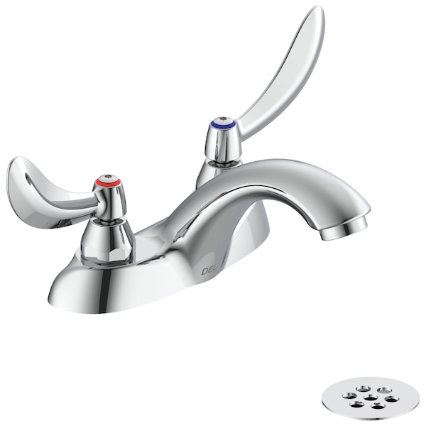 Commercial 21C Two Handle Centerset Lavatory Faucet With Grid Strainer In Chrome