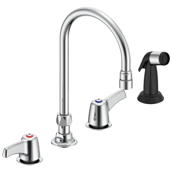Commercial 27C1 / 27C2 Two Handle 8 In Below Deck-Mount Faucet With Hose And Spray In Chrome
