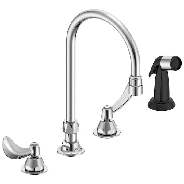 Commercial 27C1 / 27C2 Two Handle 8 In Below Deck-Mount Faucet With Hose And Spray In Chrome