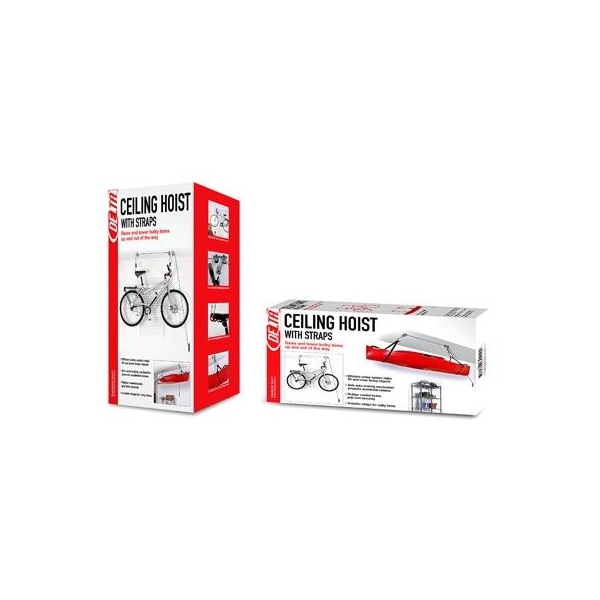 Bicycle Ceiling Hoist With Straps, Easily Holds A Bicycle, Kayak, Ladder, Etc, Maximum Load 50 LB, Efficient Pulley System Helps You Lift Lower Heavier Objects, Clever Auto Locking Mechanism Prevents Accidental Release, Quality Engineered For Durable Performance, Includes Mounting Hardware Full Instructions