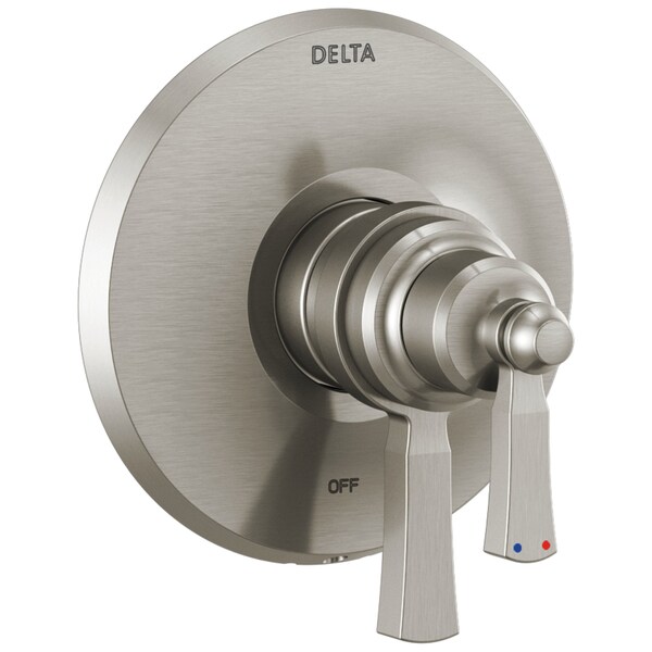 The Dorval Bathroom Collection diverges from conventional expectations with regal accents and a powerful design that commands your attention. Inspired by the feminine lines of French architecture and the regal stature of German castles, the Dorval Bath Collection balances grace and power in this modern take on new traditional design. With separate handles for volume and temperature control, this Delta tub/shower provides a more refined showering experience. Simply set the water at your preferred temperature and turn the shower on or off with the volume control handle - without interrupting your set temperature. Delta pressure-balance valves use Monitor Technology to protect you and your family from sudden temperature changes.